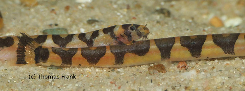 Das zweite spannende Merkmal waren die nicht auf einem dunklen Balken liegende Augen! Augen, die zwischen den Balken, also im hellen Bereich am Kopf liegen, kenne ich nur bei den Vertretern aus der Pangio shelfordii Gruppe. Deshalb ordnete ich die neuen Dornaugen auch erst mal aus dem Bauch heraus dieser Gruppe zu. Wie richtig ich damit lag, wusste ich erst mal nicht, dabei stand/steht die Lösung seit Jahren im Buchregal ...und ziert sogar das Cover ...