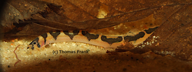 Jetzt war erstmal klar das es sich bei meinen Dornaugen um Pangio superba. handeln musste.. Bei neueren Recherchen im Zuge der Überarbeitung dieser Homepage fiel mir dann aber noch einmal die sehr ähnliche Art P. atactos ein, und ich sah mir noch einmal die Beschreibung zu diesem Dornauge genauer an. Demnach sollte es sich bei meinen Funden doch um die im Jahre 2009 beschriebene Art Pangio atactos handeln. Wie ich das sehe ist auch diese Art auf dem Buchcover von Roberts zu sehen, und zwar die unteren beiden Tiere. Die oberen zeigen dagegen die tatsächlichen P. superba
